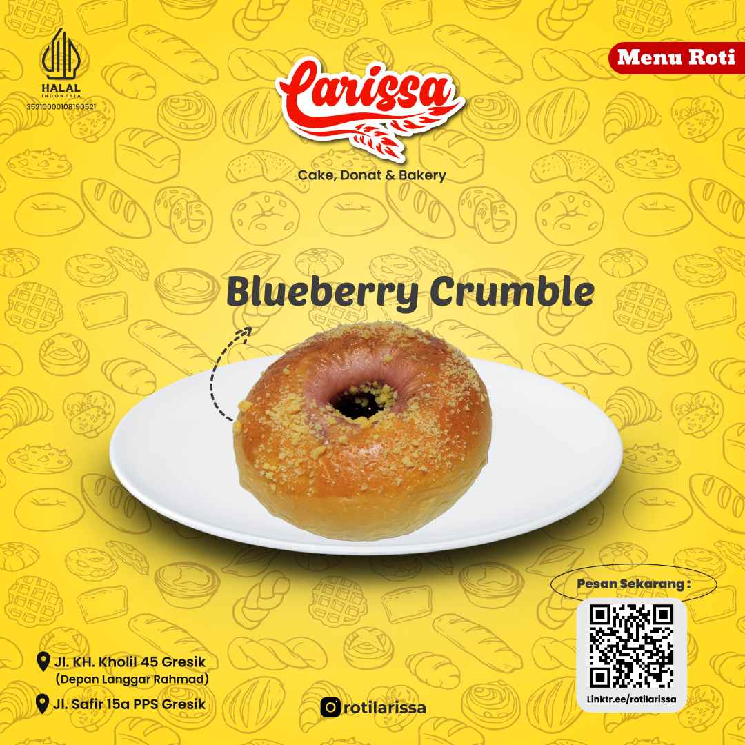 Blueberry Crumble dikemas dengan rapi dan higienis, memastikan kesegaran blueberry dan kerenyahan crumble tetap terjaga. Kemasan praktis membuatnya mudah untuk disajikan di berbagai acara atau dibawa sebagai camilan.